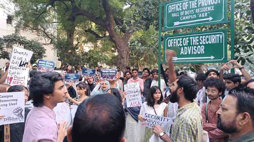 “We continue our struggle against hooliganism of Administration. We continue to procession against Security Advisor who is currently the greatest threat to security of common students. We continue to fight for our right to debate and dissent,” said the release.